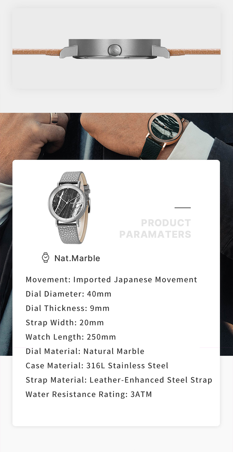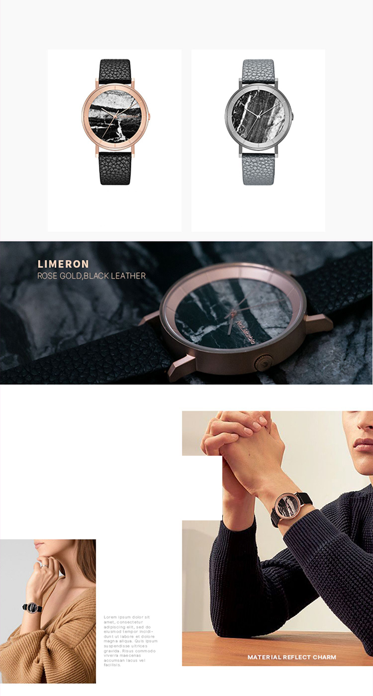A niche and retro-designed watch with a simple and artistic temperament for both men and women. It features a natural marble dial